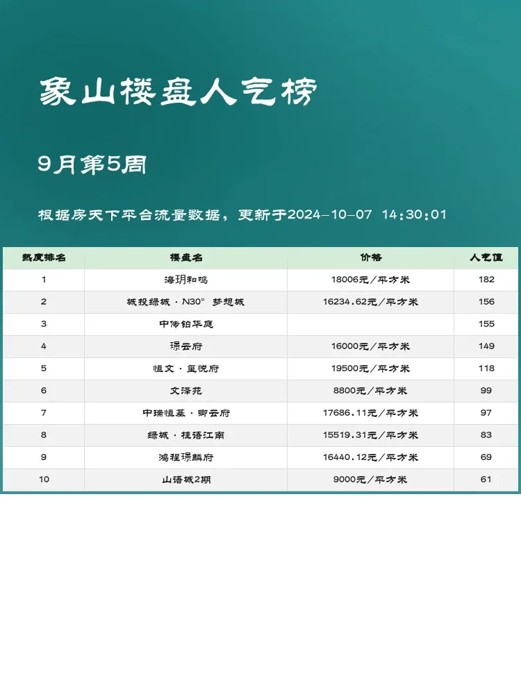 🏡 想要在象山安个家?人气楼盘榜单就是你的好帮手!在当前楼市动态中,了解楼盘的热度和特点能帮助购房者做出明智选择。对于首次置业者或投资者来说,榜单中的信息极具参考价值。热门楼盘不只是高性价比,更意味着优质的生活环境和潜在的升值空间。