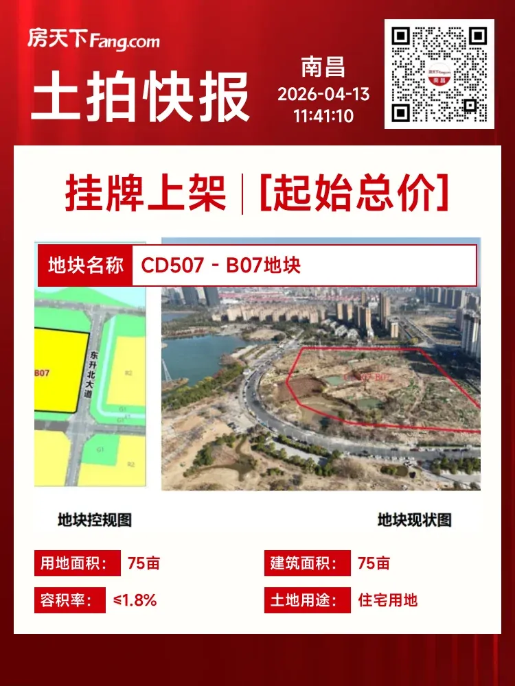 🏠 南昌青山湖区CD507-B07地块上架!位于青山湖区广阳湖路以南、东升北大道以西,面积约75亩,规划用途为住宅用地,1.0<容积率≤1.8,计划结合市场意向在二季度出让。