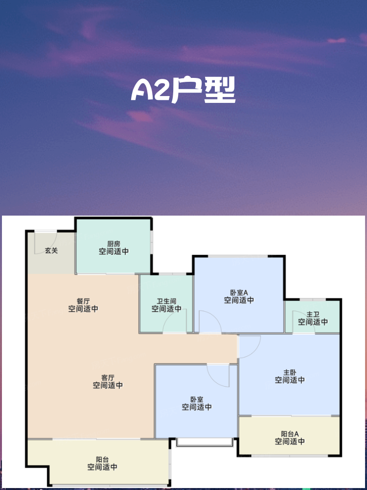 🌟 **A2户型**:3室2厅2卫,建筑面积89.00㎡,参考总价60.52万元/套