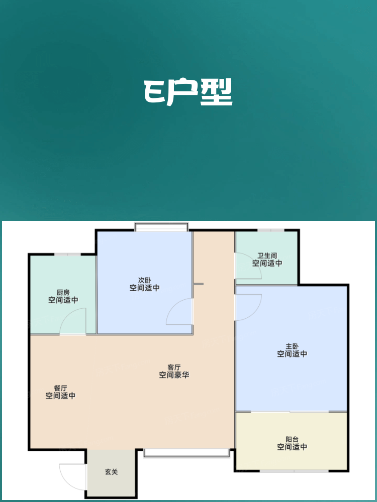 🟧 **E户型:2室2厅1卫**