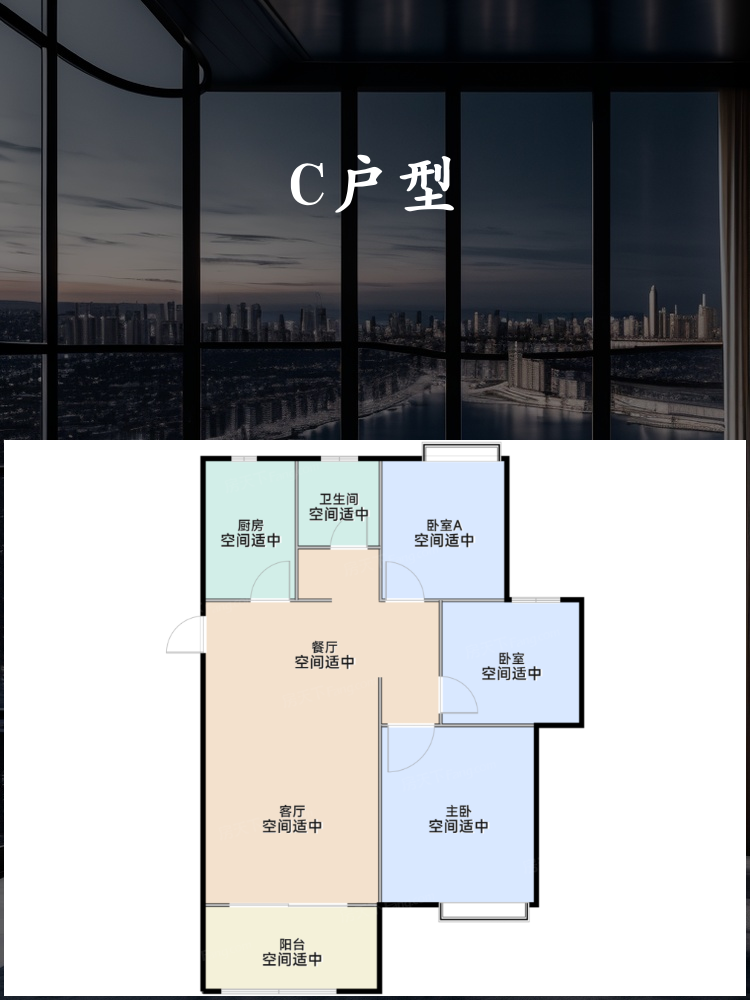 🟨 **C户型:3室2厅1卫**