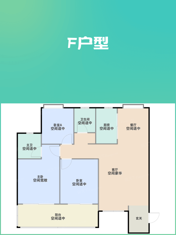 🟩 **F户型:3室2厅1卫**
