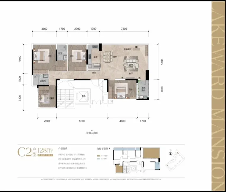 超4米宽客厅,开间7.3米,且是独立电梯厅。