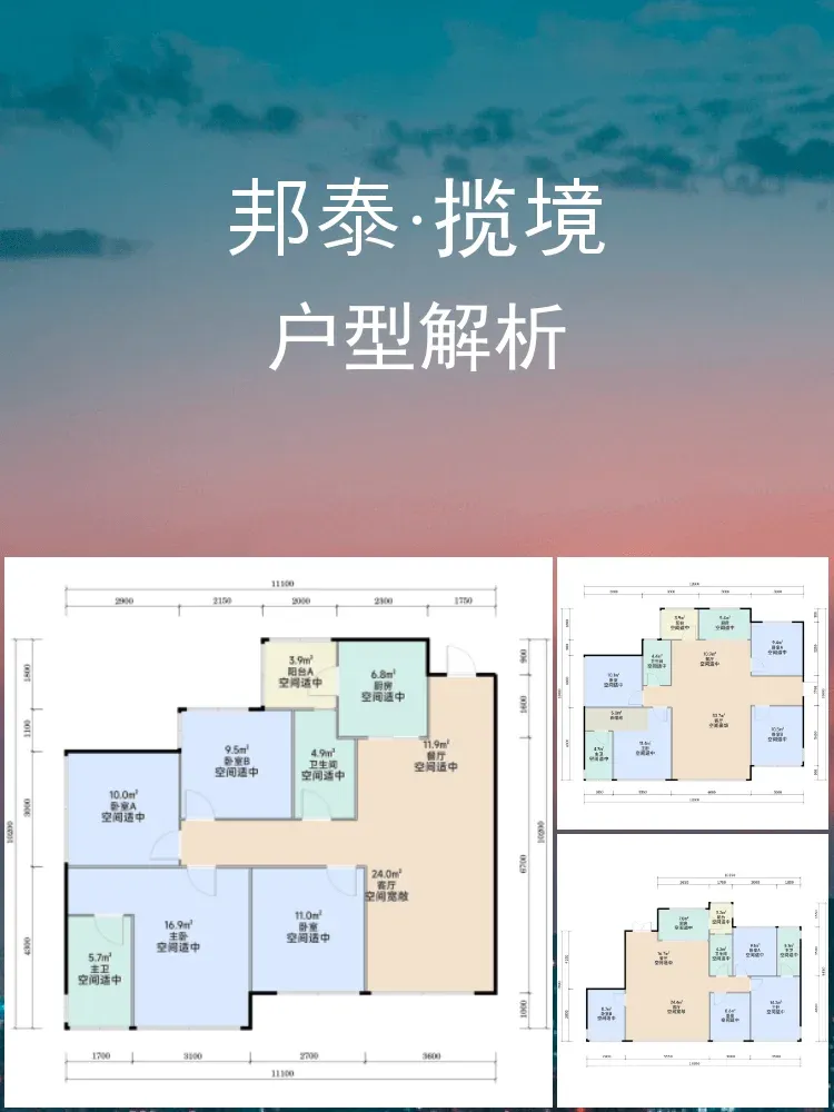 建兴路33号的邦泰·揽境最近悄悄上新了!🔥 作为主城稀缺的纯住宅盘,这次推出的三个户型全是4室2卫配置,尤其90㎡做四房的设计直接刷屏朋友圈~今天带大家360°拆解这些"空间魔术师"户型!