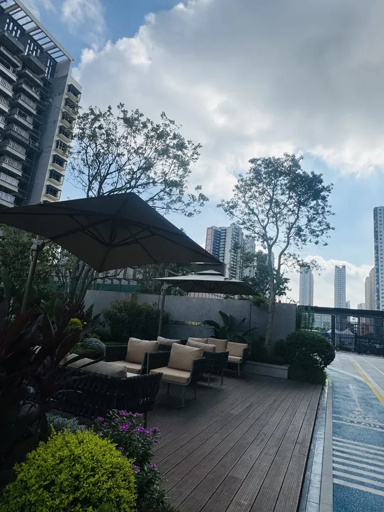 紧邻南宁东站枢纽,以现代轻奢风园林对话城市繁华。抽象南宁江流之韵,融直线构图与涟漪意境,打造开放与围合并存的生态空间。