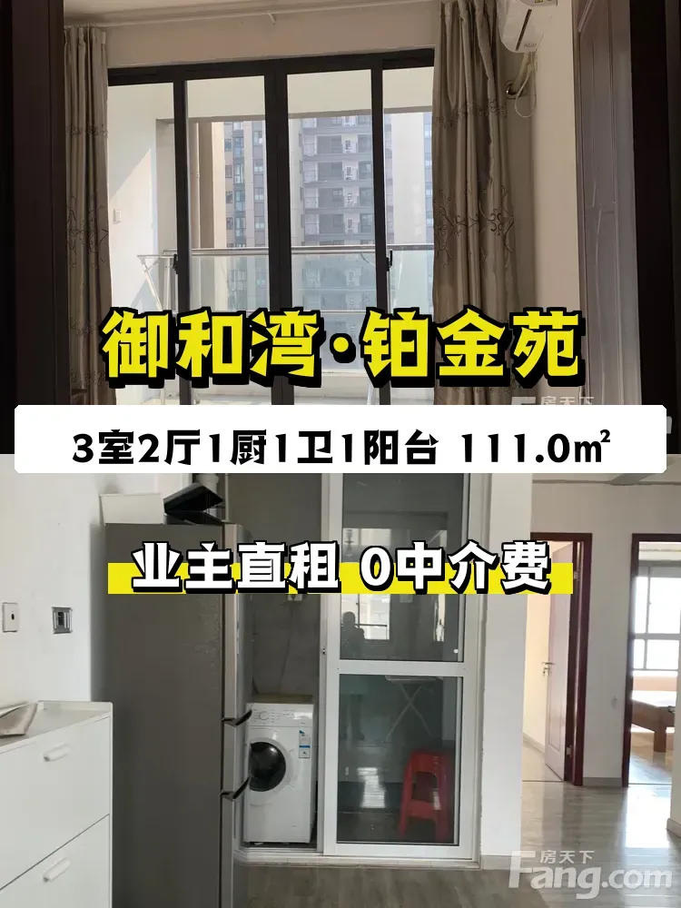 【宽敞三居室】 房源为111平米的3室2厅1卫户型,空间布局合理,主次卧朝南,客厅宽敞明亮,适合家庭或多人合租,居住舒适度高。 【业主直租无中介】 本房源为业主直接出租,免去中介费用,租金1450元/月,支持半年付方式,租期灵活,沟通更直接透明。 【随时可入住】 房屋已具备入住条件,租客可根据自身需求随时签约入住,省去等待时间,方便快捷。 【成熟小区环境】 御和湾·铂金苑位于启东市建设北路,小区环境整洁,周边生活配套齐全,满足日常购物、餐饮等需求,居住便利。