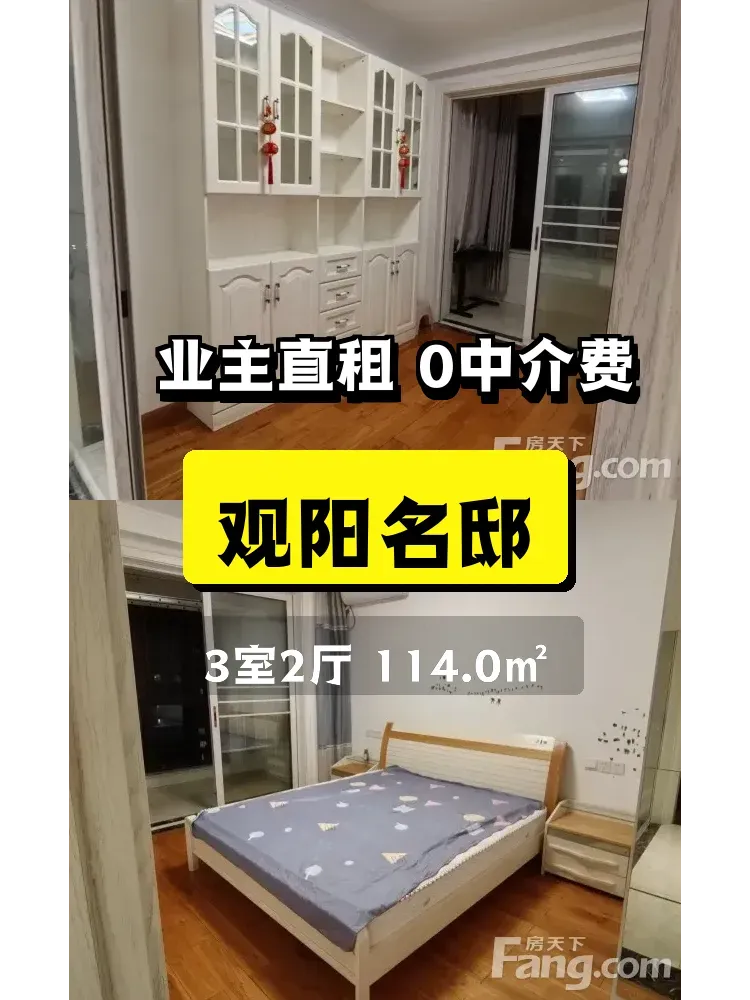 标题:自家观阳名邸三居室出租🌿南北通透+独立阳台,业主直租无中介费!