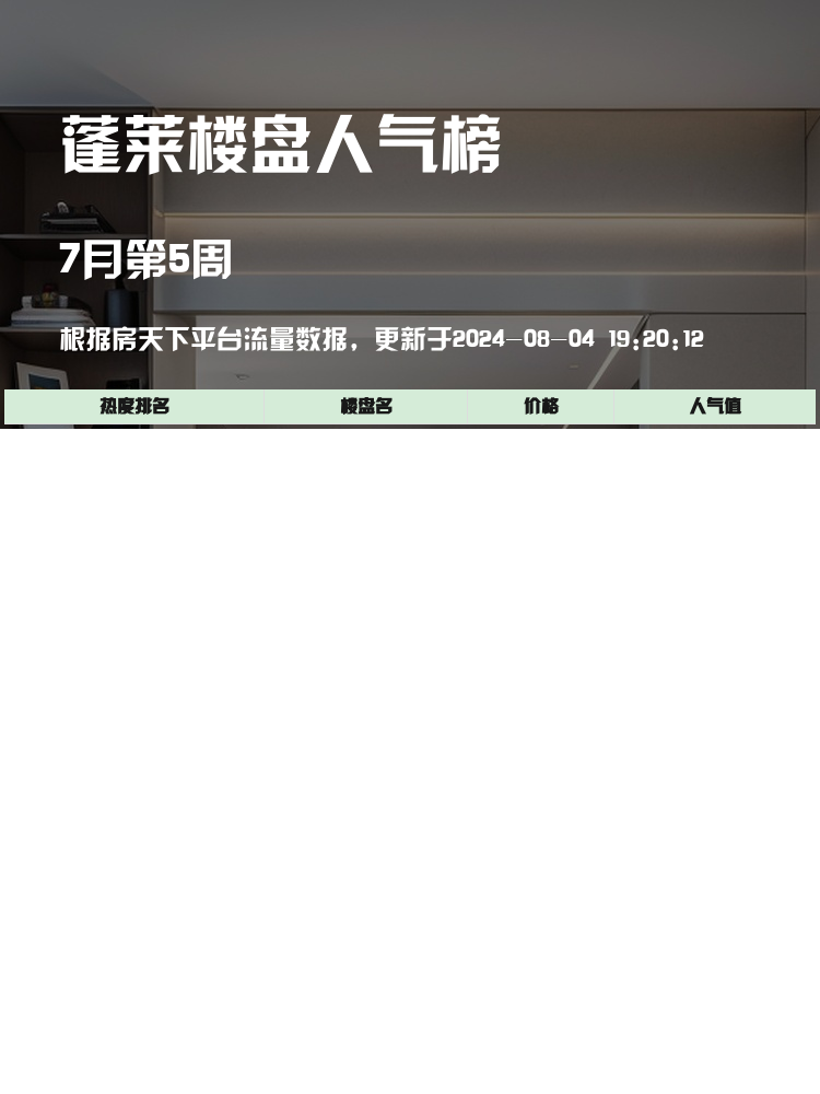 买房选房,了解人气楼盘榜单至关重要!🏡✨当前市场,购房者更关注的是楼盘的性价比、配套设施以及交通便利性。这些因素直接影响居住的舒适度和便利性。今天为大家带来蓬莱人气楼盘榜,看看有哪些楼盘上榜吧!