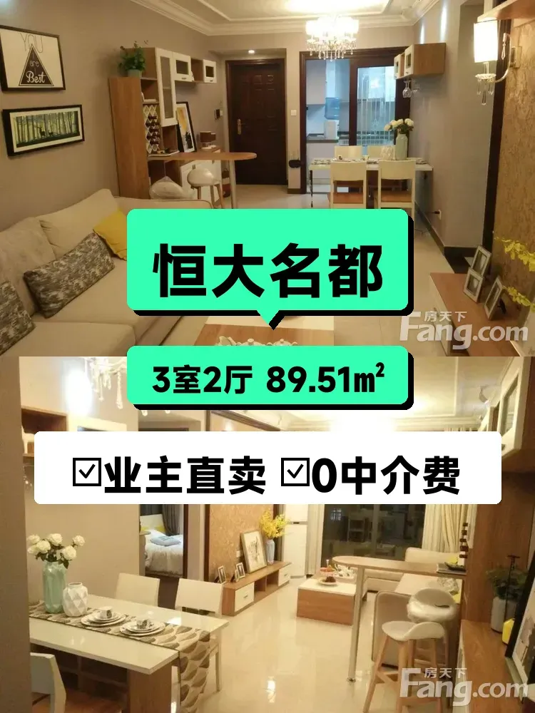 标题:急售!自家恒大名都南向三居室🌇高楼层采光无敌