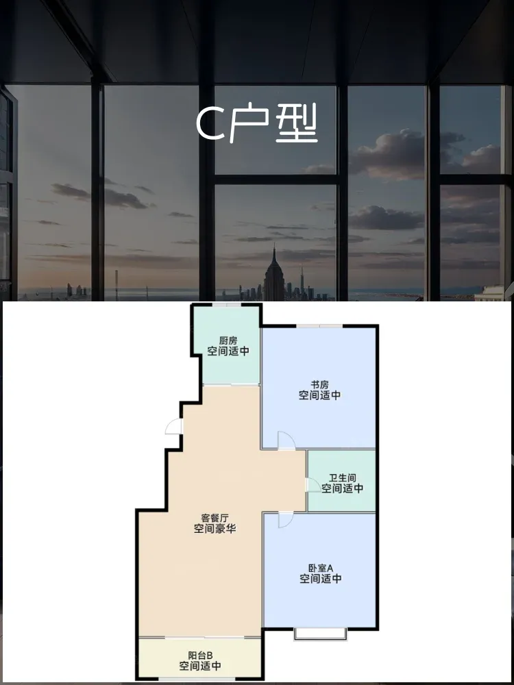 🔹**C户型:80㎡,2室2厅1卫**