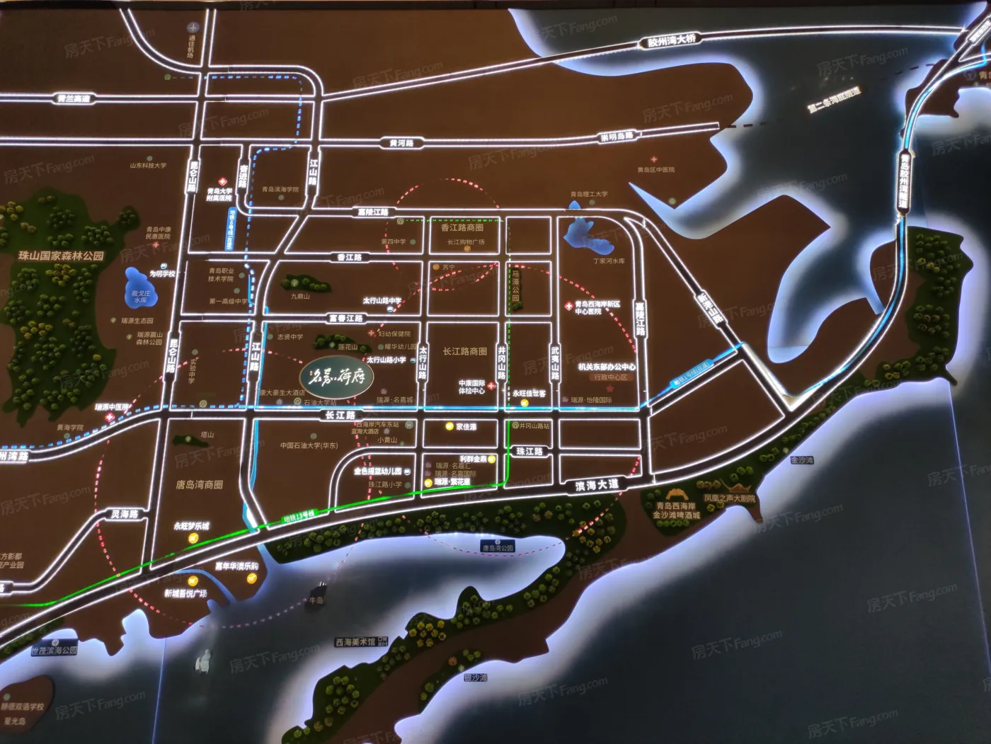 往前1公里是唐岛湾滨海公园