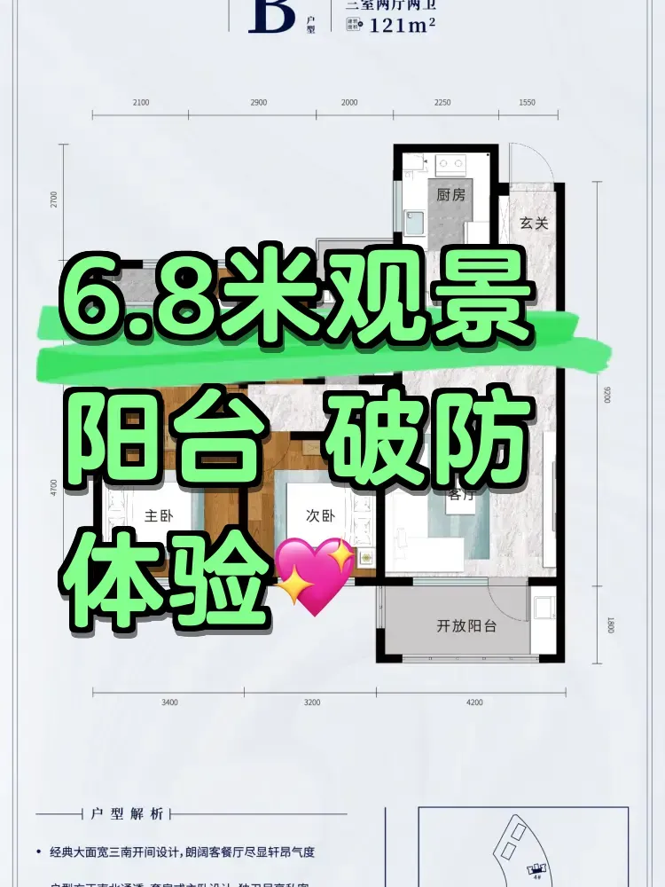 6.8米全景阳台正对金沙滩方向