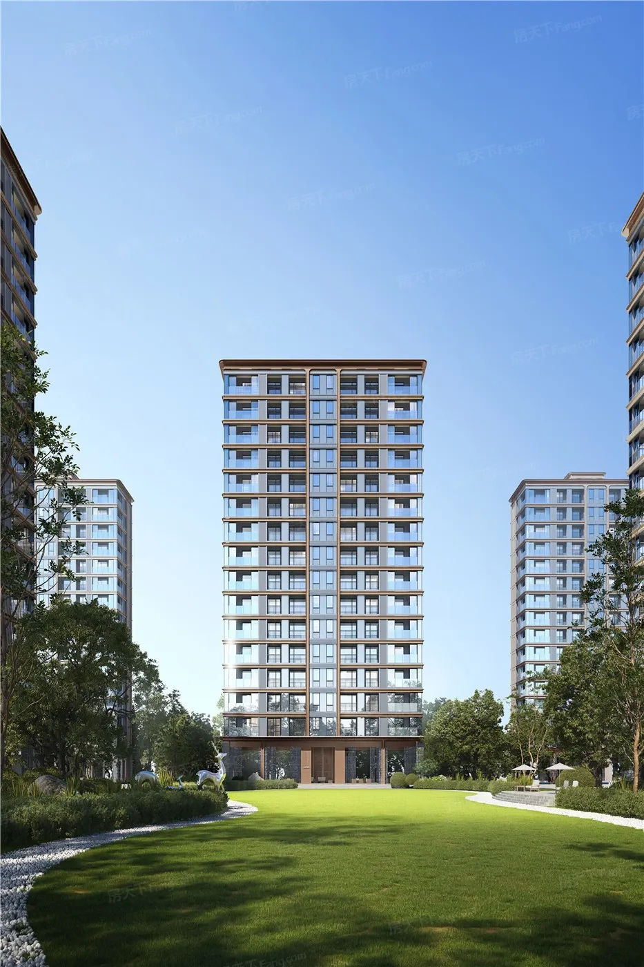 现场体验完全颠覆数据认知:12栋楼全部南偏东15°排布,既保证冬日满窗日照,又让每户都能看到浮山轮廓。更绝的是楼栋高度从12层到18层渐变排布,站在小区中心花园居然没有压抑感。