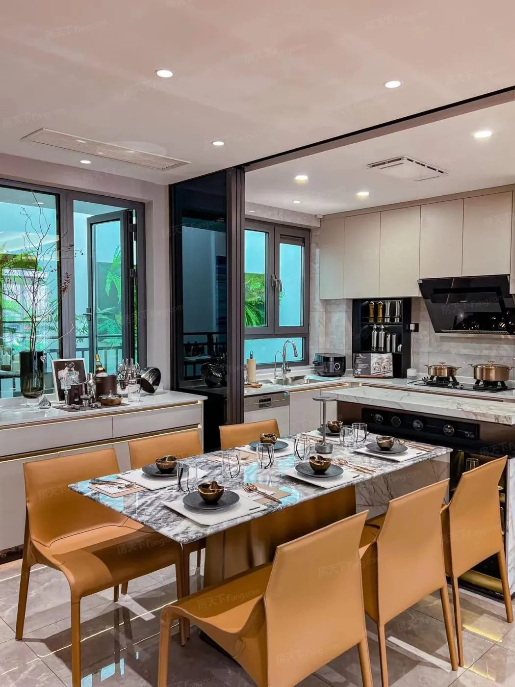 作为美食博主,看过无数样板间厨房,青铁安澜地的设计真的戳中我心巴!U型操作台+中岛的设计,转身就能完成备餐到装盘。最绝的是隐藏式轨道插座,吃火锅再也不怕扯线了。