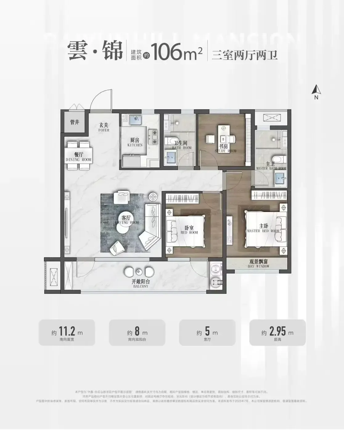 上周陪闺蜜看房,她家现在住的老房子厨房转个身都费劲。中介说现在流行"旧房换新家",但看到中巍·白云山居的106㎡户型图我惊了——这厨房开间居然有2.4米?要知道现在很多改善盘厨房都缩水到2米!