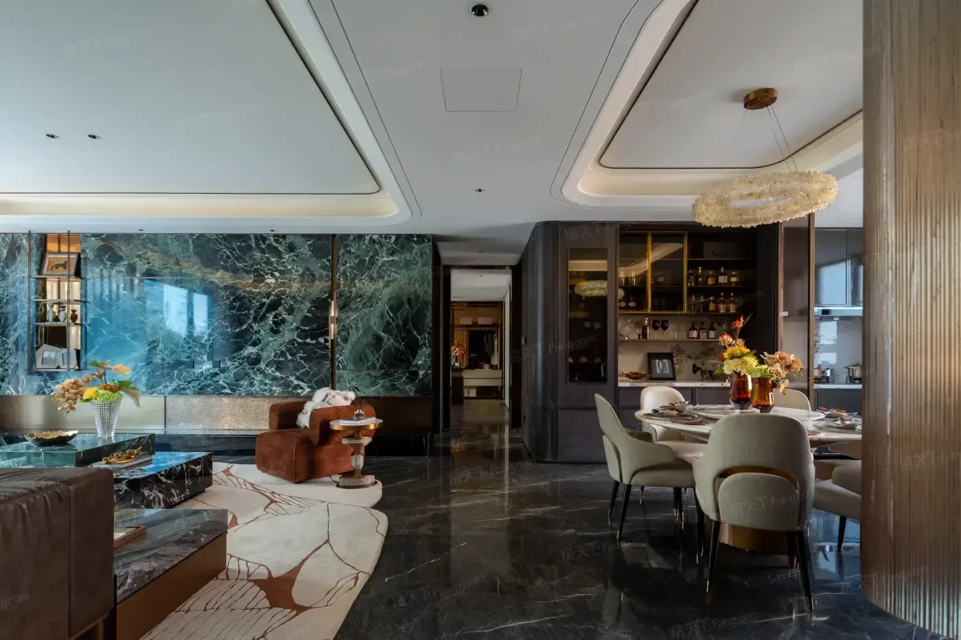仔细研究才发现开发商在空间设计上耍了小心机:U型厨房+双面操作台,把空间利用率拉满。更绝的是那个中西双厨设计,岛台直接连通餐厅,备菜时还能跟家人聊天。不过要吐槽的是样板间用了超薄冰箱模型,实际入住后可能就没这么宽敞了。