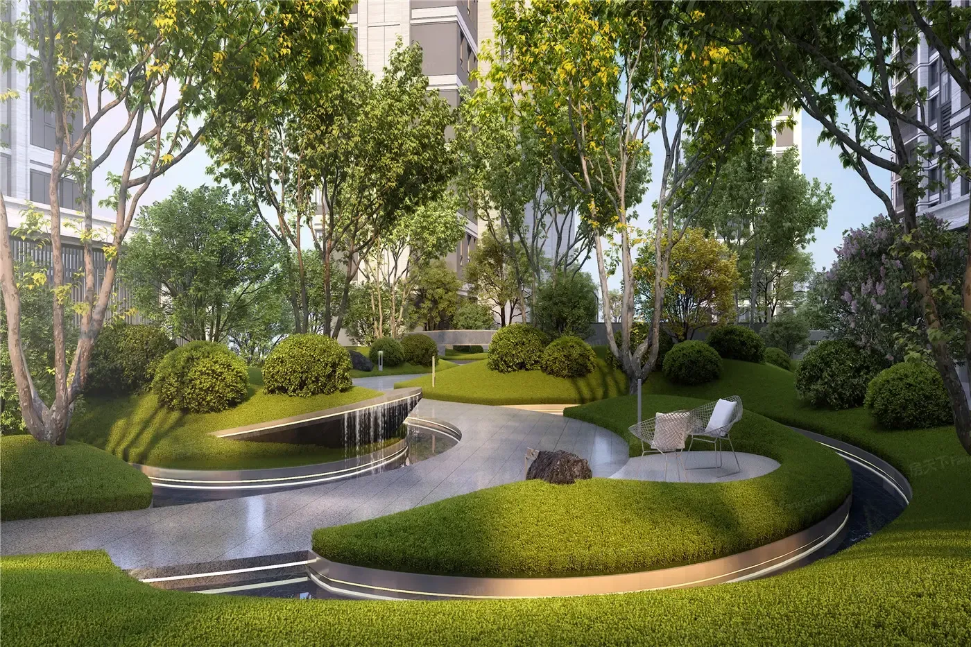 不过要夸的是他们的乔木选种确实用心,银杏、榉树这些落叶乔木搭配常绿松柏,四季都有景致。最惊喜的是儿童活动区用了全软胶地面,比那些用廉价塑胶的楼盘良心多了。但必须吐槽小区中央的镜面水景,维护成本绝对会转嫁到物业费上。