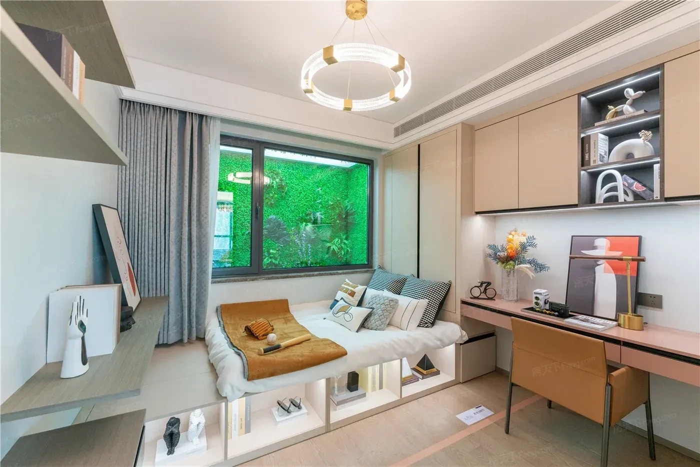 最让我震惊的是儿童房的「空间折叠术」:1.5米榻榻米打开是玩具车库,墙面洞洞板挂着平衡车头盔,窗台延伸出可收折的学习桌。现在她家娃的奥特曼战队再也不用在客厅列队**,老母亲终于实现了光脚自由。