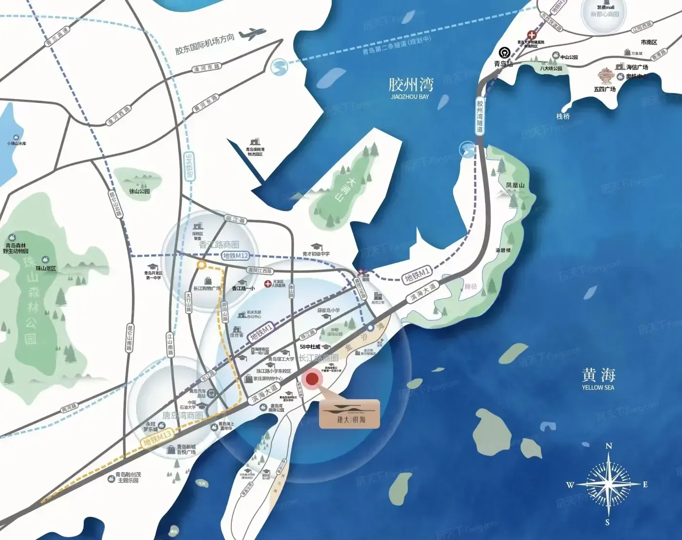 最近总听同行说黄岛楼市被分成了两类:能看海上西湖的,和不能看的。建大悦海这个1.1容积率的盘,硬是把唐岛湾海景做成了客厅背景墙。