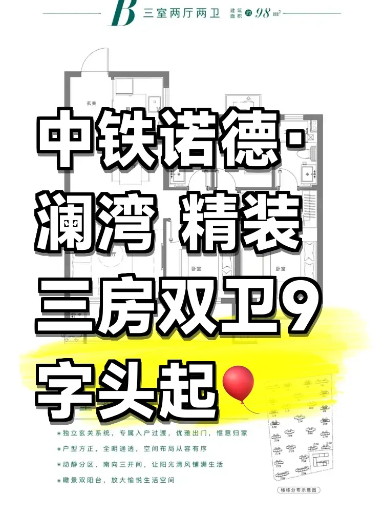 看过中铁诺德·澜湾98㎡的户型,才懂什么叫"空间魔术师"。三开间朝南+约6.6米观景阳台,主卧带独立卫浴的配置,直接把三代同堂的隐私感拉满。更狠的是精装三大件全配齐,连玄关柜都给你打好,这届开发商终于不把购房者当韭菜了!