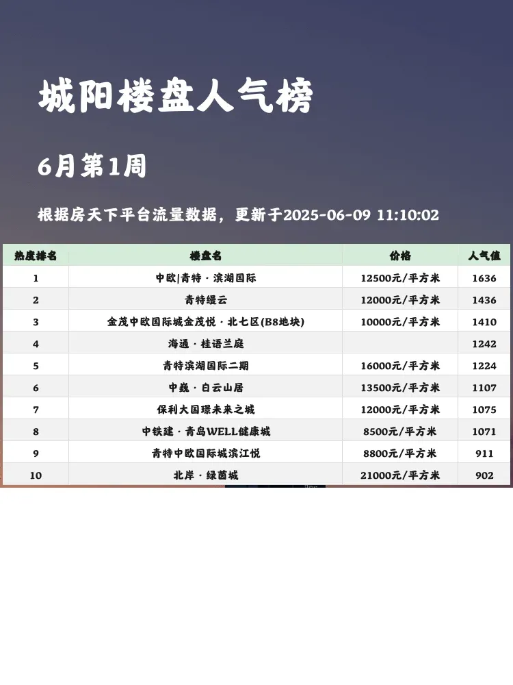 买房选对楼盘就是赚到💰!这份城阳人气榜单帮你避开选择困难症~当前市场下,核心逻辑就是【地段+性价比+实用率】三要素缺一不可!快来看看这些实打实的热门选手👇