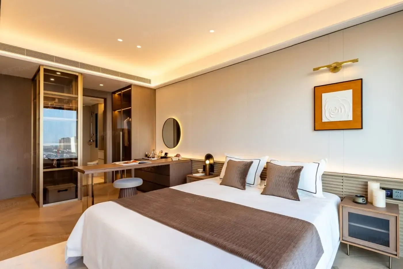▫️作为新生代家庭理想居所,119㎡起步的户型尺度感人。主卧标配270°L型观景窗,躺床上就能收获橘子海日落,开放式厨房动线合理得能塞下双开门冰箱+烘焙区。