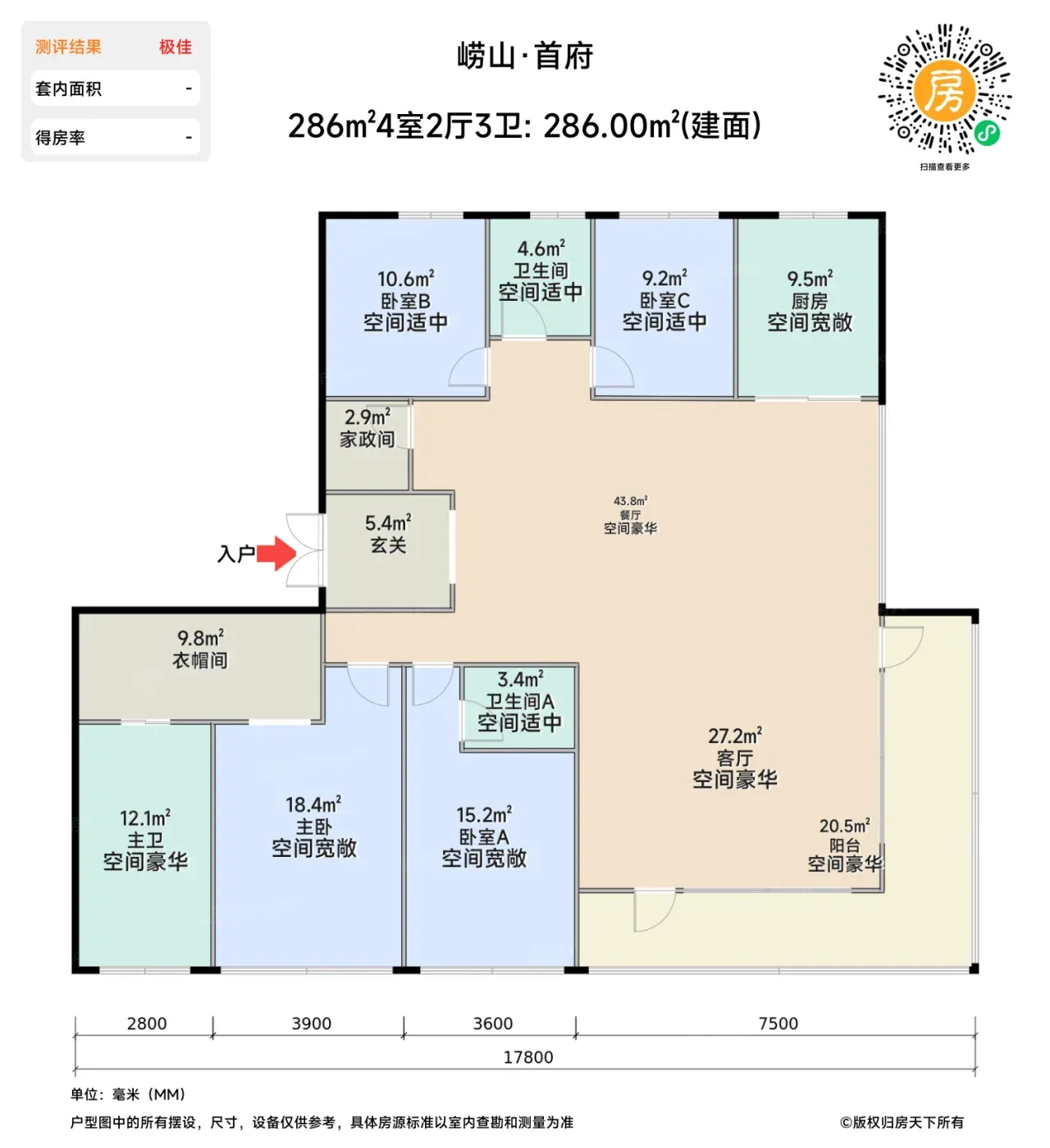 2.地铁会展中心站实测步行8分钟,亲测早高峰通勤到五四广场25分钟。但286㎡户型主卫没配浴缸,改善细节缺了点仪式感