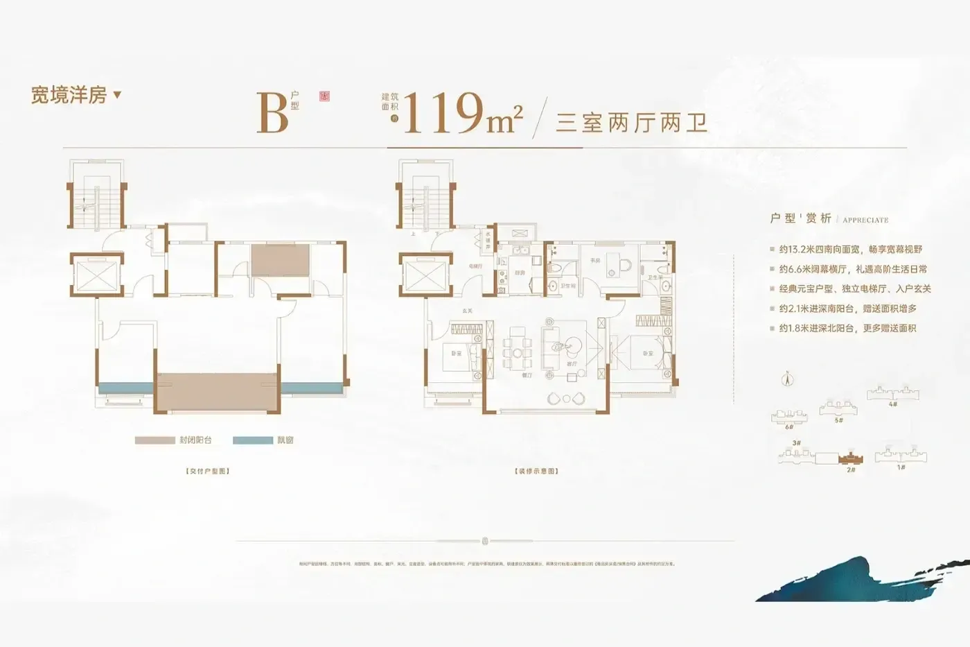 2⃣户型魔法:119平双卫配置适合二孩家庭,但总价够在胶州买两套大三居,青岛新中产的消费力测试器了