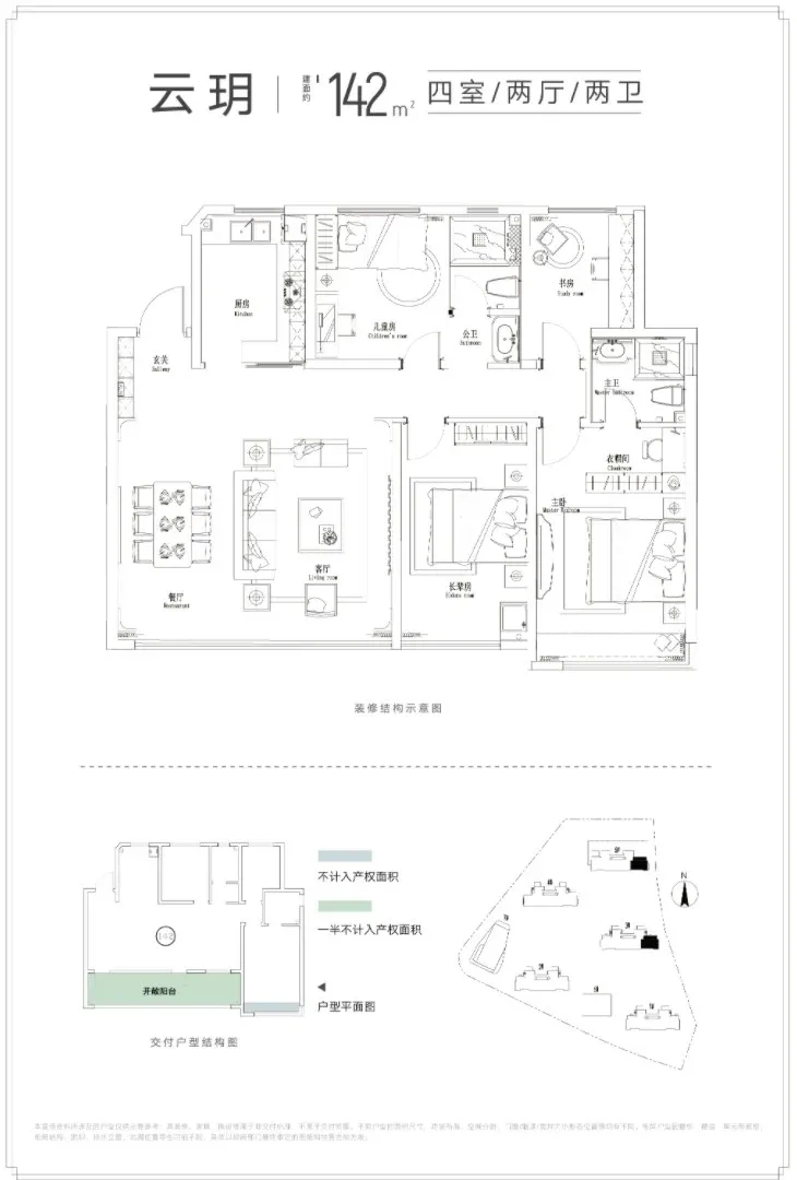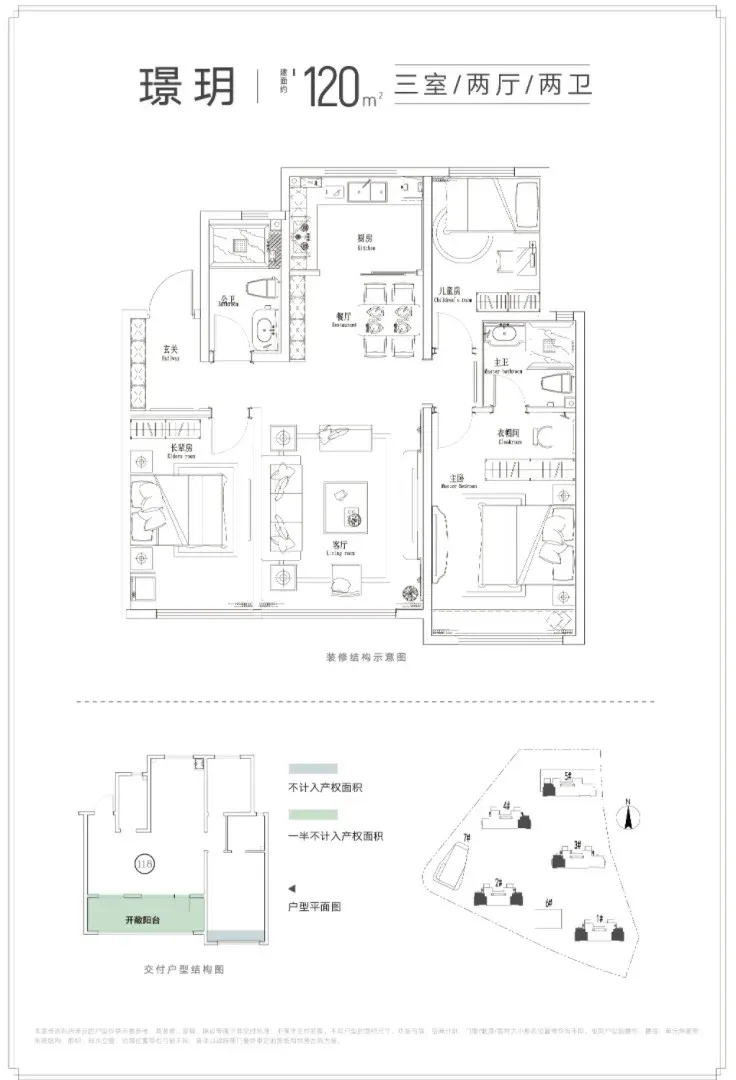 主力户型建面约105㎡/120㎡/142㎡,