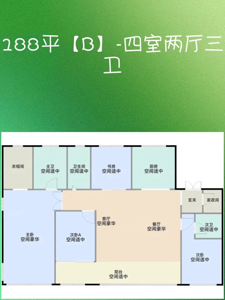 【188㎡A户型|四室两厅三卫】
