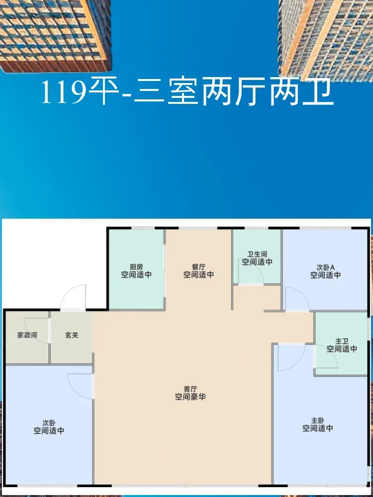 【119㎡小三居|三室两厅两卫】
