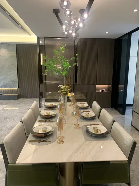 金茂悦府二期准现房213平大平层,大套四双厅三卫,1.8米宽大阳台,大约12平,客厅开间7.7米宽,一梯一户南北通透全明户型,楼间距99米,全天采光无遮挡