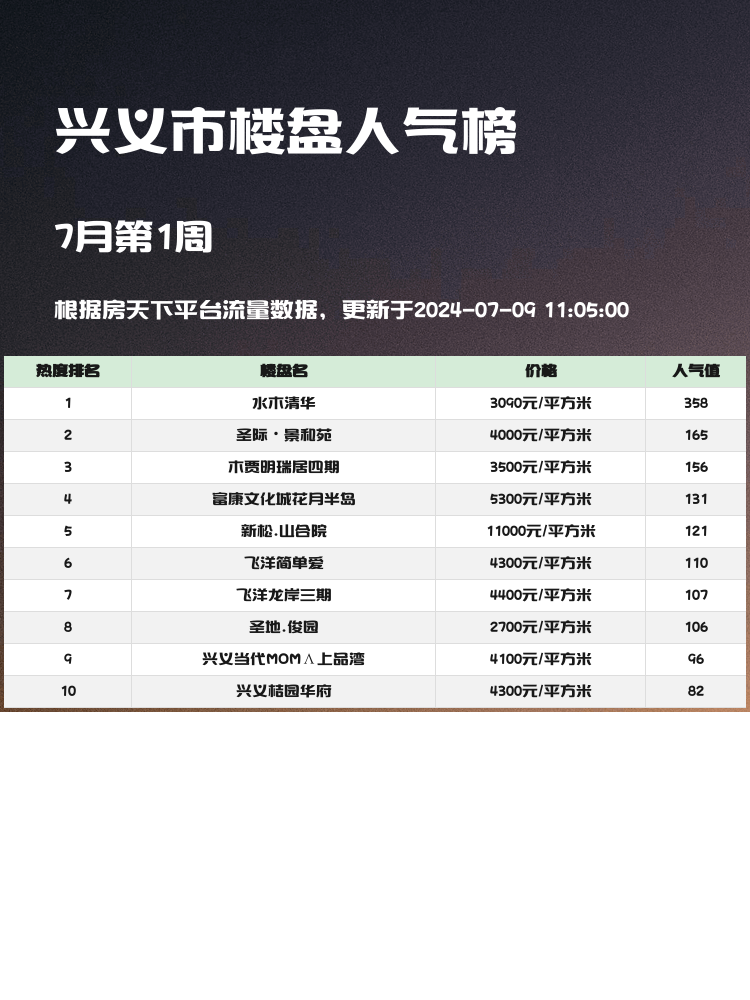 如果你正在考虑在兴义市买房,那么你一定不能错过这份人气楼盘榜单📊!在如今的市场环境下,选对楼盘不仅仅是居住问题,更是投资的智慧💡。本文将为你详细介绍兴义市最受欢迎的前3名楼盘,包含地理位置、周边配套、价格等关键信息,助你做出明智的购房决定。