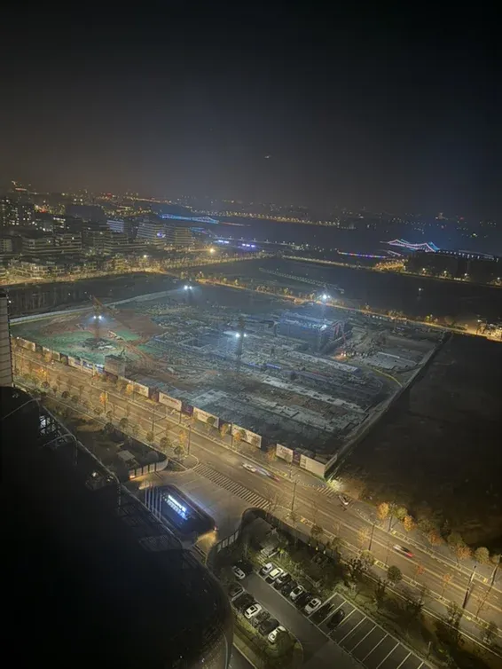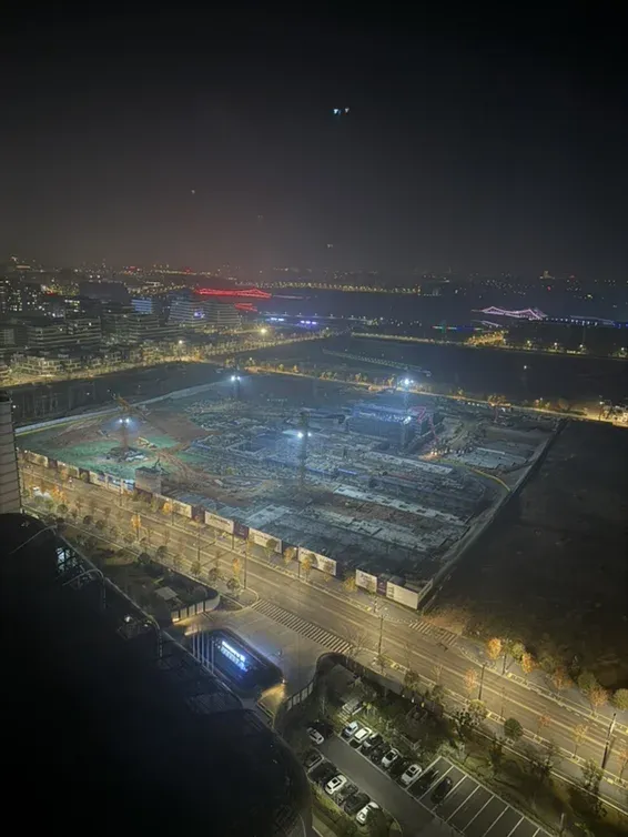 紫宸府夜晚的工地施工现场