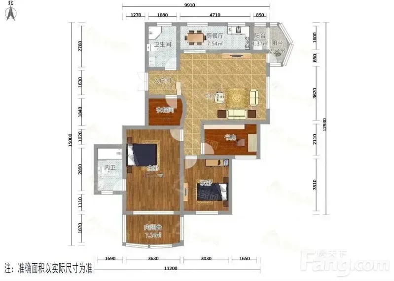 标题:自家精装大三房出租💖世纪花园南北通透随时入住
