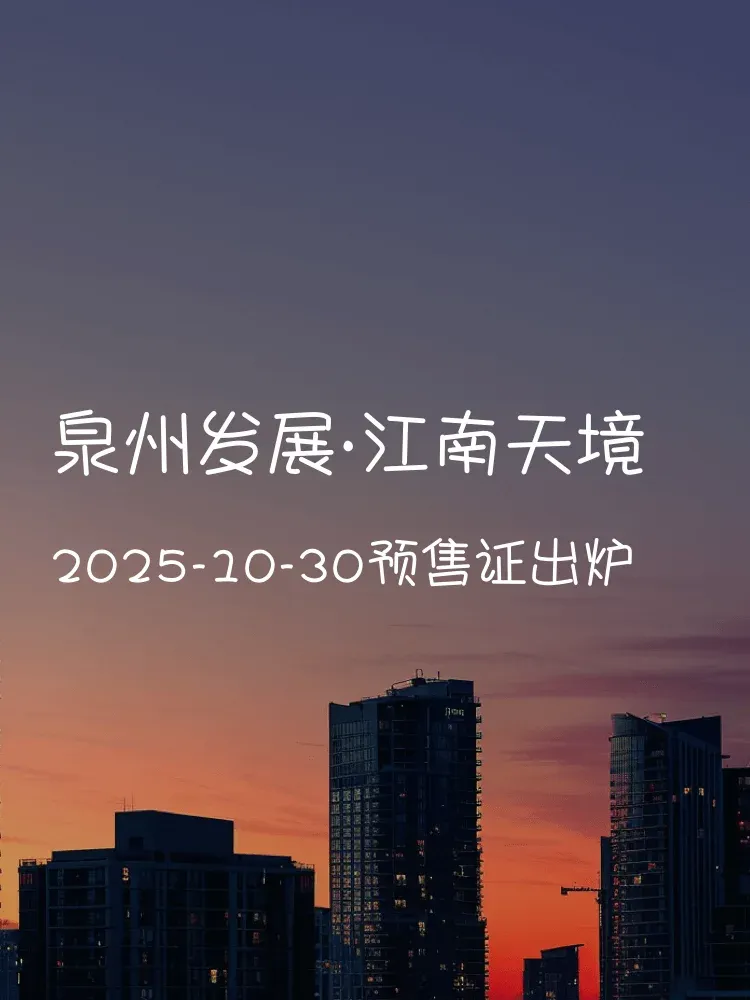 泉州发展·江南天境于2025年10月30日正式取得预售许可证(证号:(泉住)预售2025第18号),项目位于鲤城区浮桥街道田中社区,主打刚需改善型住宅。预售楼栋已获批,意味着购房者可以放心选购啦!