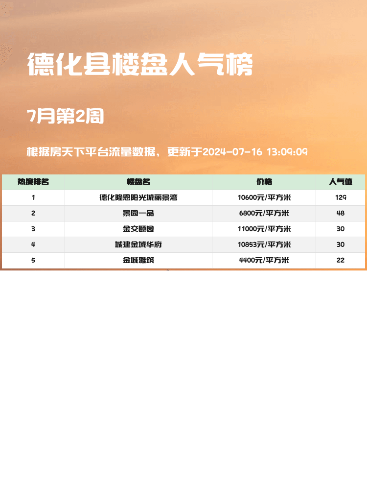 通过这次榜单分析,相信大家对于德化县的热门楼盘有了更深入的了解。期待每一位购房者都能够找到心仪的家园,开启幸福的新生活!🌟