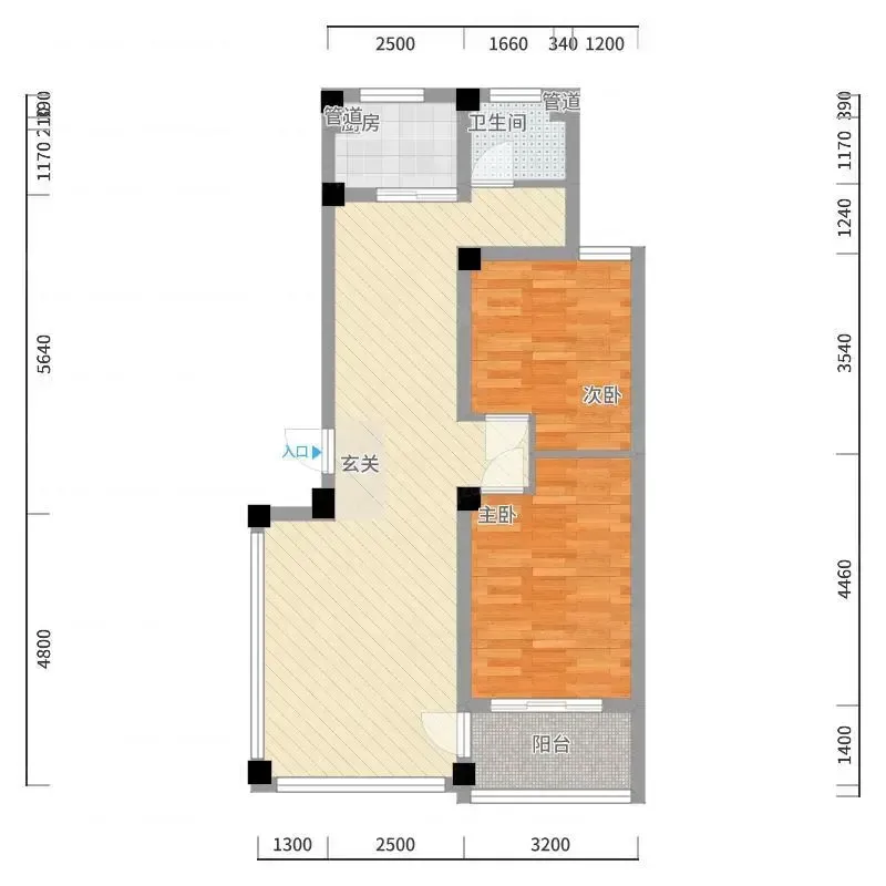 户型是2室2厅1厨1卫1阳台,南朝向
