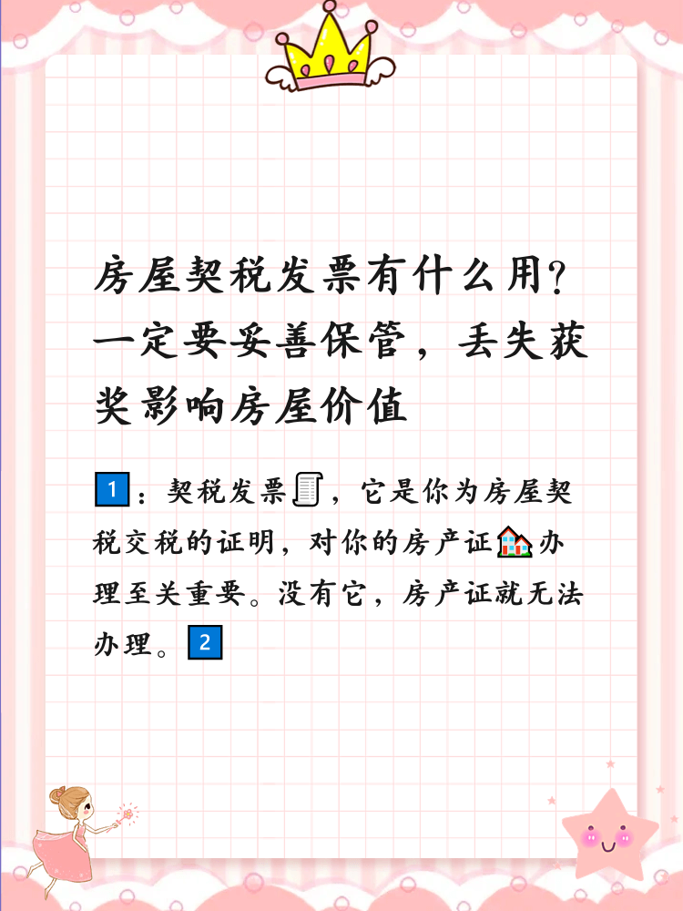 总结:为了保护你的房产权益,务必妥善保管你的房屋契税发票。一旦丢失,可能会影响房屋价值,甚至可能带来一系列繁琐的法律问题⚖️。