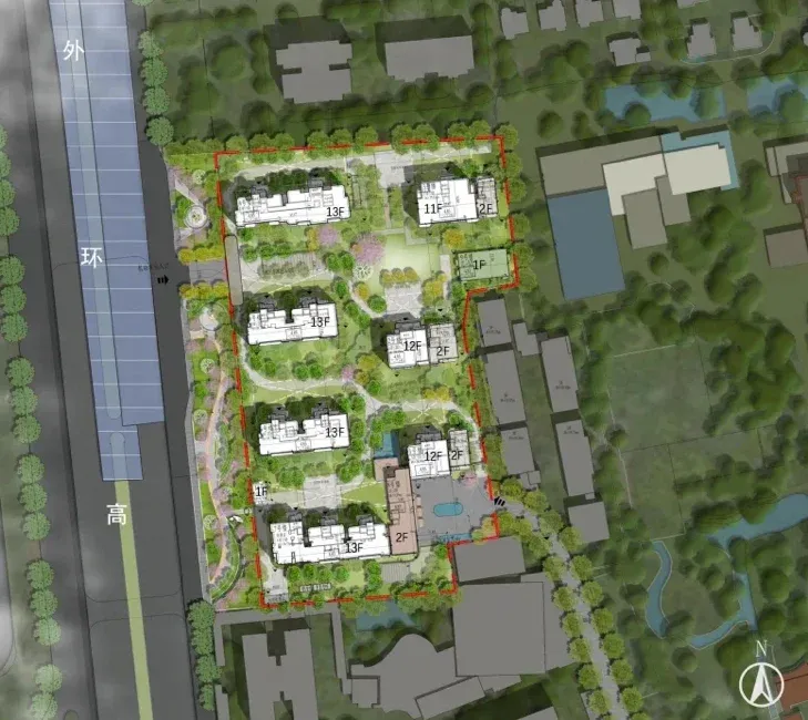 「西郊云庐」位于上海动物园隔壁西南侧,紧靠外环高速,旁边是龙柏饭店和龙柏高级公寓。项目拟建7栋11-13层小高层,共规划305户,户型面积约99-210㎡。