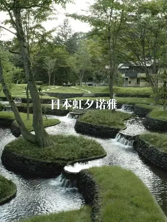 ➡️日本虹夕诺雅:石砌台地挡墙隔出火山岩梯田泡汤,每层看景不撞脸!