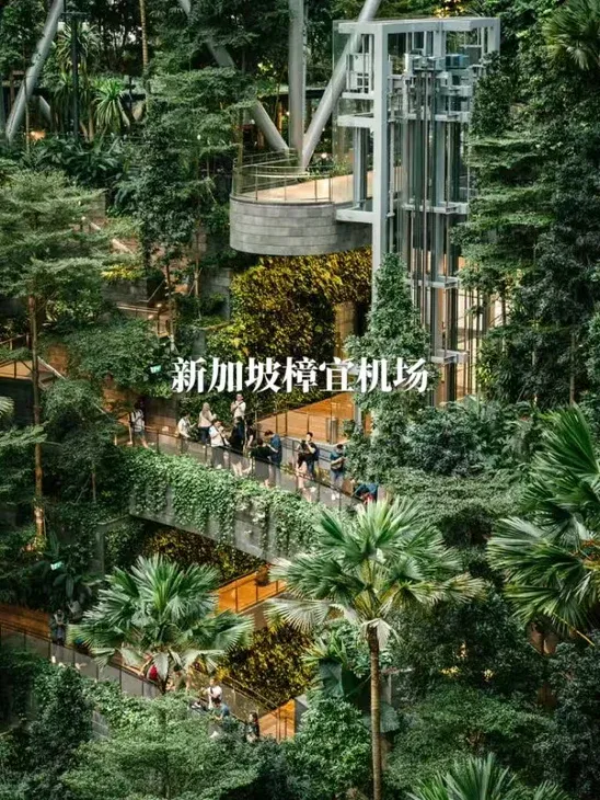 ➡️新加坡樟宜机场:约40米瀑布穿楼,人造峡谷种约200+热带植物,边逛边洗肺!