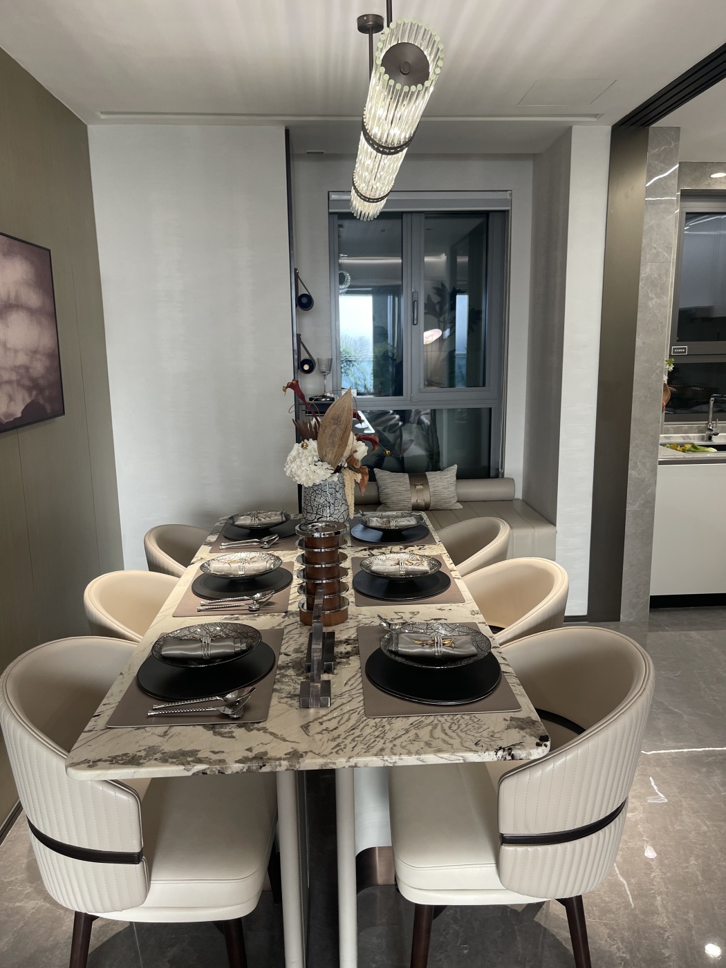 🔍 飘窗台面竟然是整块爵士白大理石