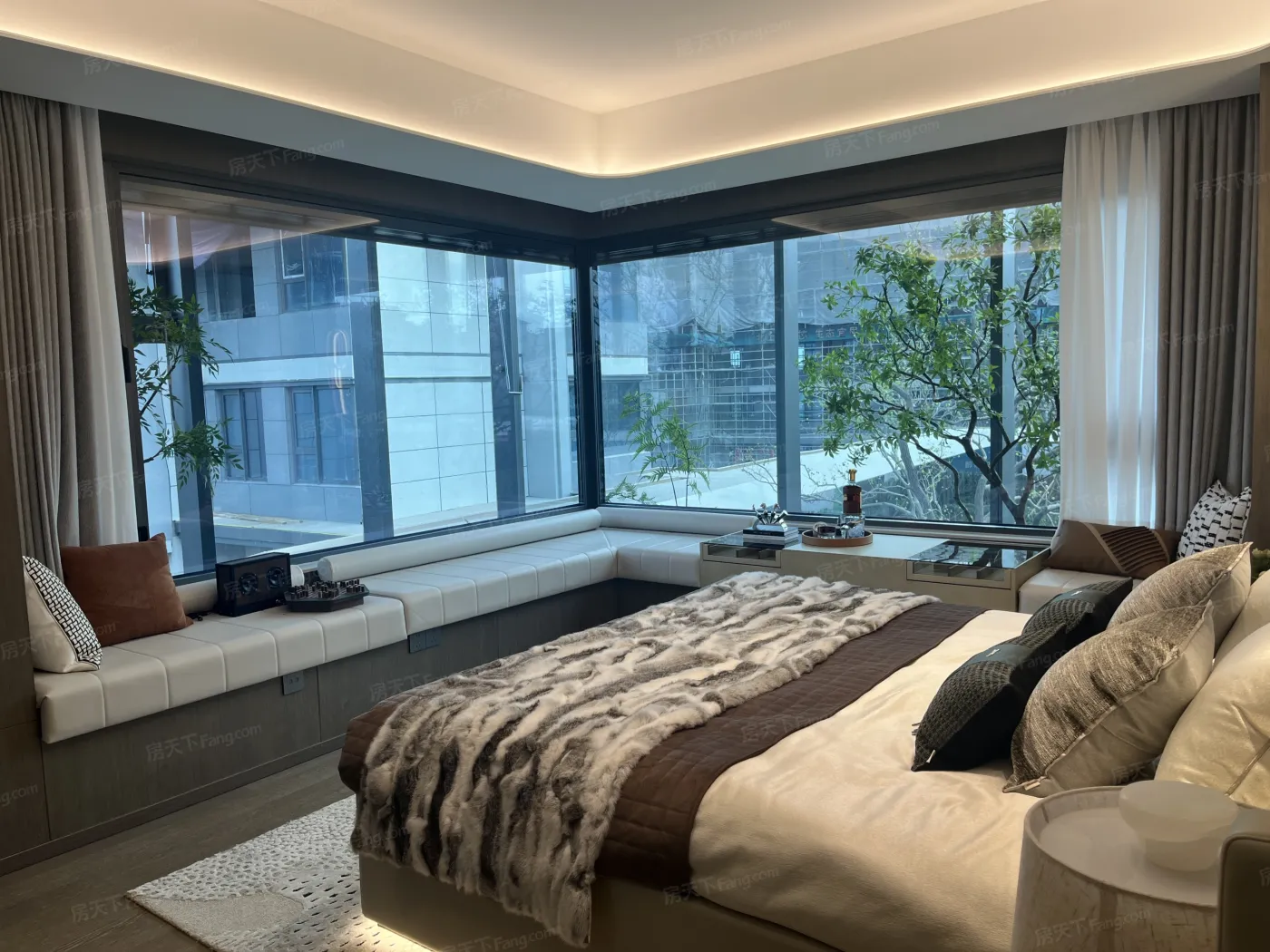 重点说说主卧套房的"回"字动线:衣帽间双入口设计,早起更衣不用绕床走。飘窗做成L型卡座,配上移动边几秒变读书角。开发商还预留了家政柜位置,连扫地机器人的家都安排好了。