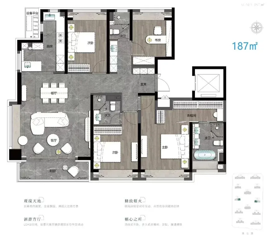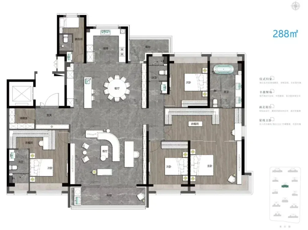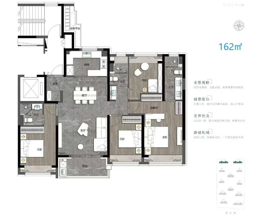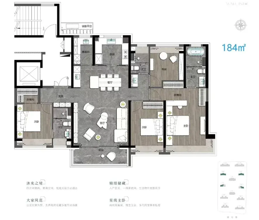 上江南贤庐位于奉贤新城11单元,拟建12栋16 - 25层住宅。户型约107 - 288㎡,跨度大,选择多。107㎡两房南北通透,主卧套房,刚需友好;115㎡三房横厅设计,互动空间充足;288㎡奢阔大平层,270°环幕视野,尽显尊荣,改善优选 。