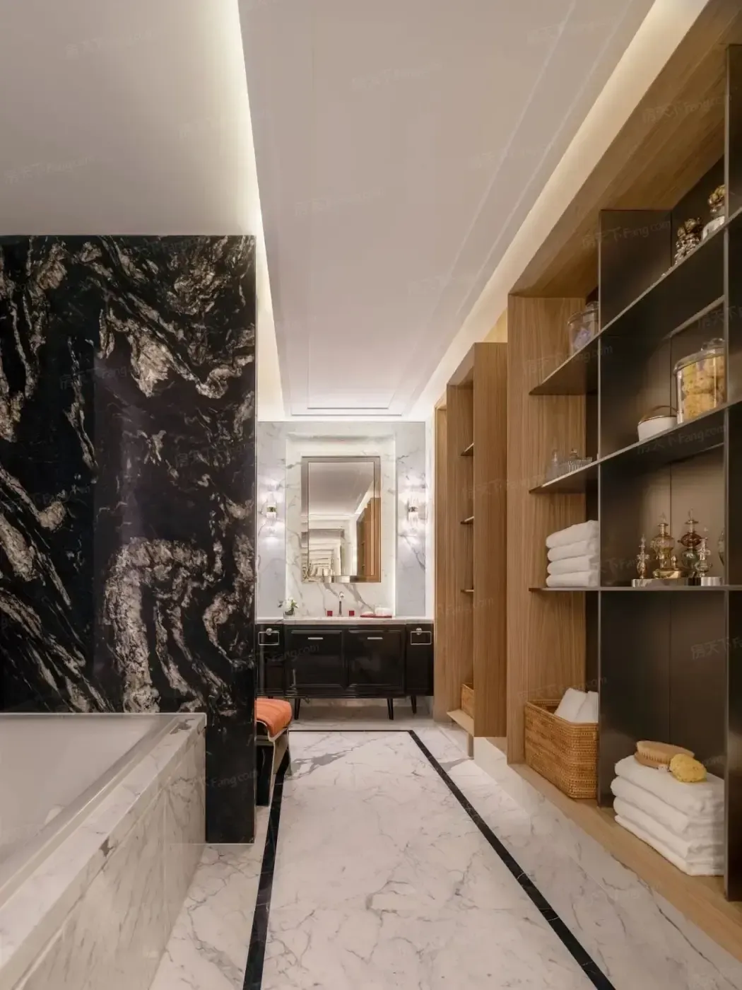 38套叠墅看似阔绰 但上叠121㎡竟要承担三层空间 实际每层仅剩40㎡ 下叠353㎡看似豪横 但地下空间占去一半面积 样板间用镜面墙和隐藏式收纳营造的"宽敞感" 在交房后只会变成满地箱子的现实
