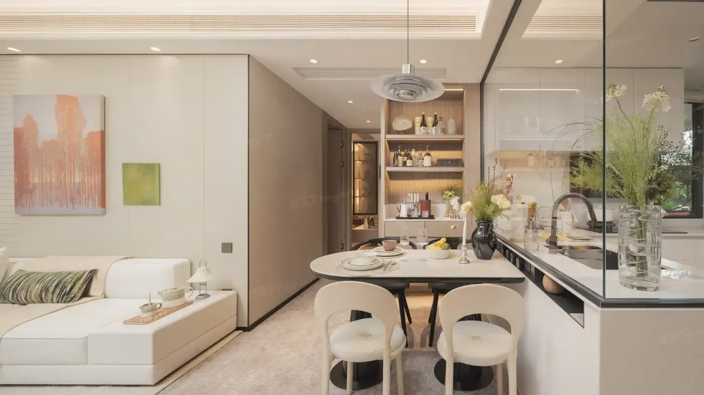 实测这个「偷来」的书房能塞下双人书桌+1.2米沙发床,柜体深度做到35cm刚好放下A4文件盒。但要注意北向房间开窗角度,下午三点后采光会打七折。厨房移门暗藏玄机,全开状态能形成环形动线,不过地轨凸起3cm容易绊到扫地机器人。