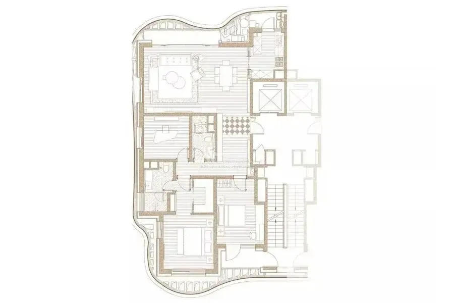最值得夸的是收纳系统,全屋隐藏式储物能塞下200双鞋。但要注意,精装交付的Cassina家具实际需自购,样板间那把LC4躺椅官网标价12万。