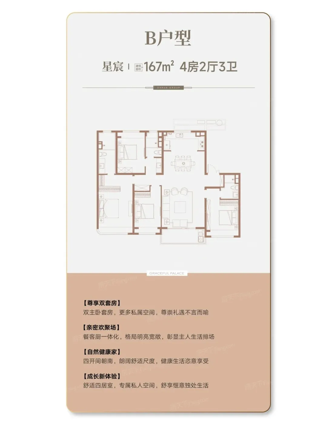 上周探盘大华锦宸府,发现这个1.5容积率的社区藏着不少生活巧思。191㎡户型主卧套间堪比星级酒店,L型飘窗秒变咖啡工作台。但更打动我的是167㎡户型的「时光折叠术」:7米面宽客厅+双洄游动线,老人看电视和孩子上网课互不干扰。