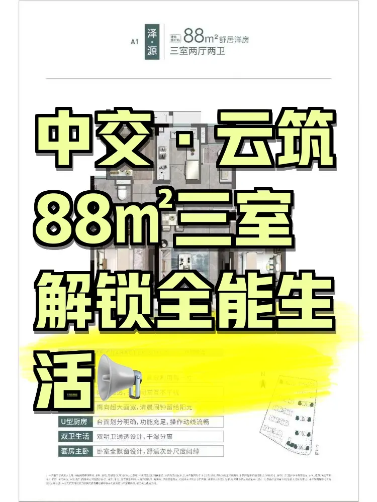 松江新房市场最近杀出个「三房刺客」:建面88㎡塞进三室两厅两卫还带玄关!表姐看完户型图当场放弃婚房装修——原本要打掉两面墙才能实现的动静分区,这里直接现成。